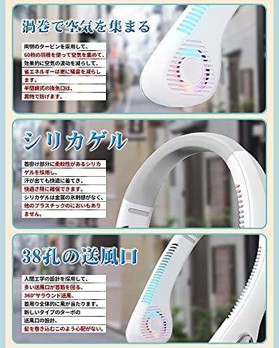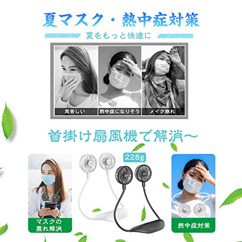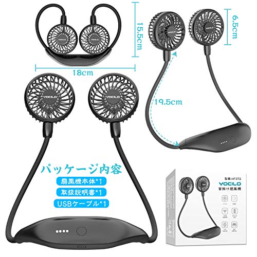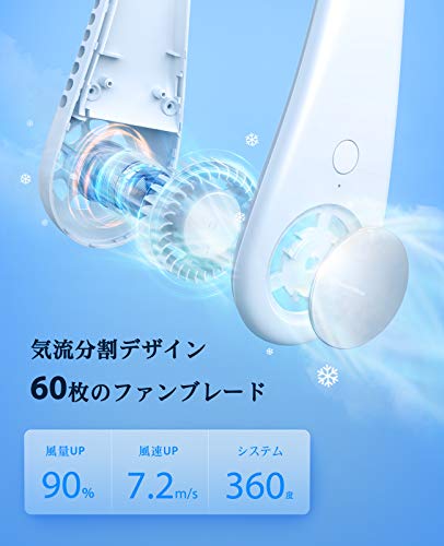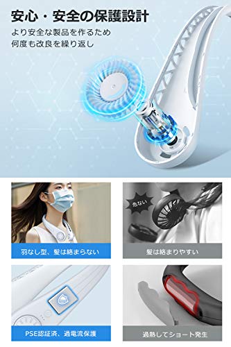首掛けした後、好みに合わせて角度調整ができる扇風機です。どこに風を当てたいのか自由に決められるので、暑い夏の日も快適に過ごせるでしょう。60枚ダブルタービン設計により羽根を取り除き、髪の毛の巻き込みや怪我を防ぎます。