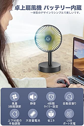 5000mAhのバッテリーを備え、USBで充電をしておけば卓上だけでなく外出先でも使えるのも嬉しいポイントです。パワフルな風を送り出し、涼しい環境を作り出してくれます。