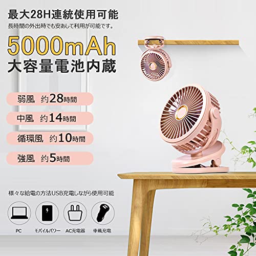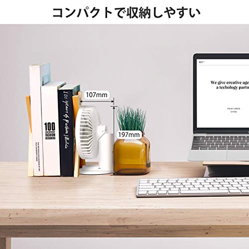 USBから電源を取れる、充電式タイプです。コンセントが遠いデスクでも、気軽に扇風機を使いたい場合におすすめ。5000mAhのバッテリーを備え、最大で28時間の稼働が可能です。