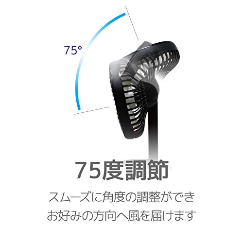 左右だけでなく、上下にも360度の角度調整が可能です。好みの角度に調整すれば、心地よい風を行き渡らせられると人気を集めています。保護カバーなどには耐久性の高いABS樹脂を使用し、うっかり落としてしまった時の破損を予防。長く愛用できる工夫が凝らされています。