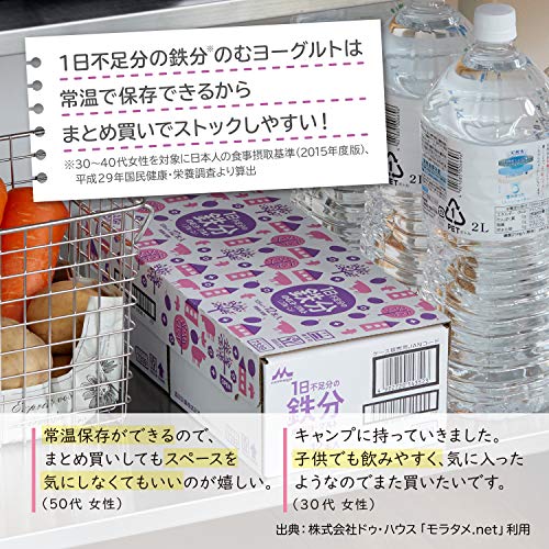 森永「1日不足分の鉄分 のむヨーグルト プルーン」は、常温保存できるヨーグルト飲料です。賞味期限が120日と長く、ストックして続けるのにもおすすできます。