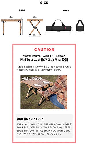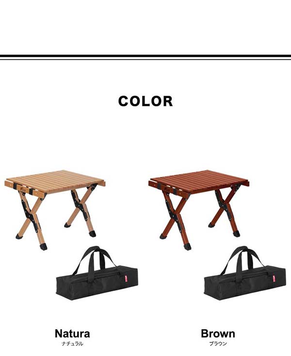 バンブーテーブルのとおり竹材を使用している家具調のテーブです。テーブルの高さは48、58、70cmの3段階の調整が可能。収納時は2つ折りして付属のおしゃれなキャリーバッグに簡単に収まり楽に運べます。高さの調節ができ、家具調のため室内での使用に最適です。