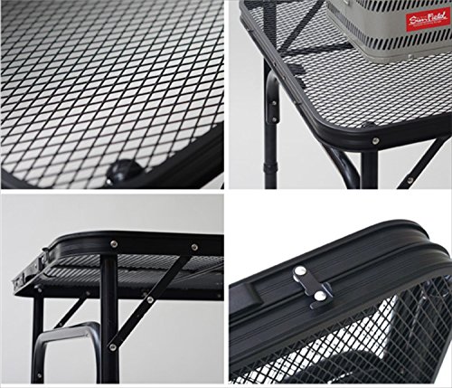 水や熱に強い構造が採用されたテーブルで、天板は金属製のメッシュになっています。重いダッチオーブンや熱いバーベキューコンロがそのまま載せられるのです。使用するシーンによって高さが2段階に調節可能で、室内でおしゃれなテーブルとしても使用できます。