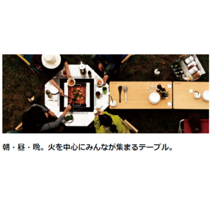 シンプルな構造ながら手軽に使え、キャンプの焚き火でサイドテーブルとして使えます。テーブルの表面は熱やキズや汚れに強いエンボス加工です。サイズが手頃でソロキャンプに役立ち、リンビングのテーブルとしても使える優れものです。