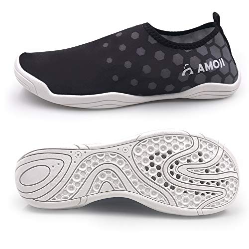 Amojiのウォーターシューズは、撥水性に優れ、水陸両用で使用できるので川遊びの必需品。伸縮性があるので、脱ぎ履きも簡単。フィット感があることで、小石や砂が入りにくく、プールや宇賀渓での川遊びにぴったりなのです。さらに、高機能なのにお手頃プライス!サイズも14cmから取り扱いがあるので、家族分を揃えて購入できますよ。