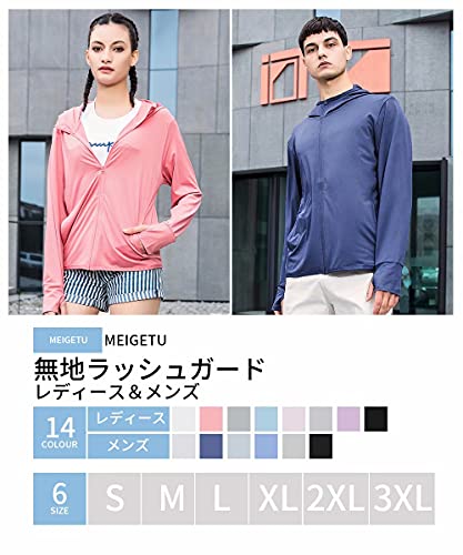 MEIGETU のラッシュガードは、メンズ・レディースが使用できるユニセックス仕様です。UPF50+で、紫外線を98%以上カット。薄手で着心地がよく、速乾性に優れているのでサラサラな生地質を維持できます。