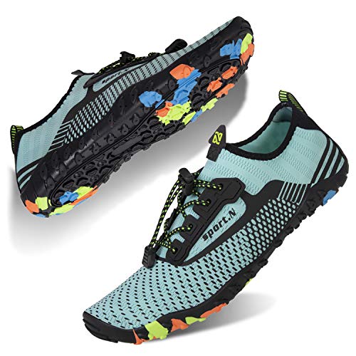 メッシュ素材のアッパーを備え、水上と陸上のどちらでも使える兼用タイプです。軽量で水を含みにくく、水の中でも快適に歩けるのが特徴。速乾性と通気性があるので、水から上がった後にそのまま陸上を歩いても違和感を感じにくいでしょう。