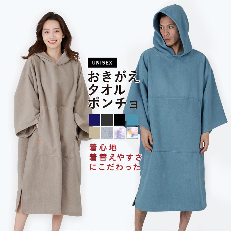 着替えはもちろん、サーフィンから上がった後に濡れた体を拭きあげられる吸水性に優れたマイクロファイバー生地のサーフィンポンチョも人気です。