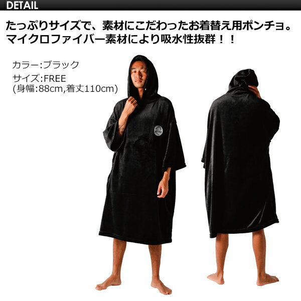吸水性・速乾性に優れているマイクロファイバー素材で作られているメンズサーファーにおすすめなサーフィンポンチョで、バスタオル代わりで使うことも可能です。