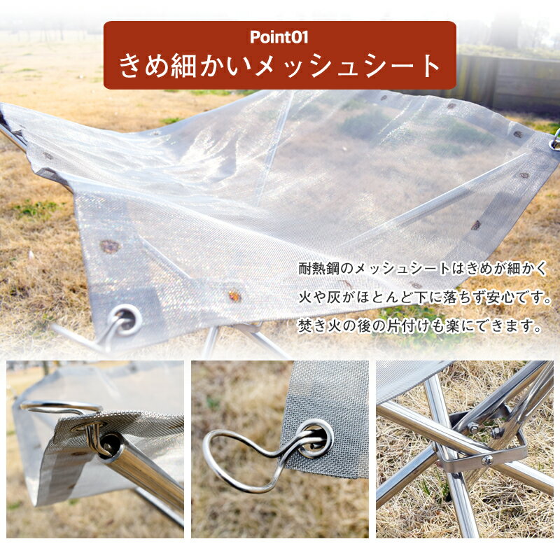 安いソロ用焚き火台「折りたたみ式 ファイヤースタンド メッシュ」の特徴②