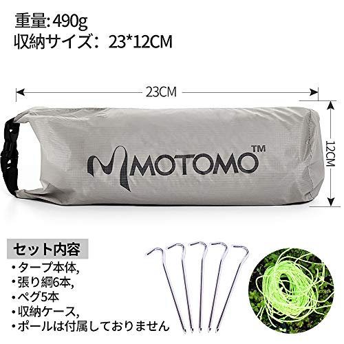 ソロキャンパーから支持されているソロキャンプに非常にマッチする特殊な形状のタープです。アウトドアブランドはMotomoとなり一般的ではありませんが、通販サイトで大人気のブランドとなり安いキャンプギアが多数あります。