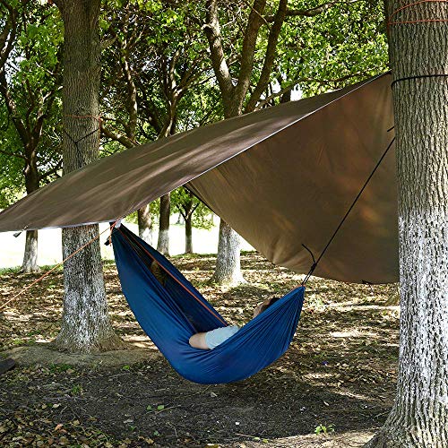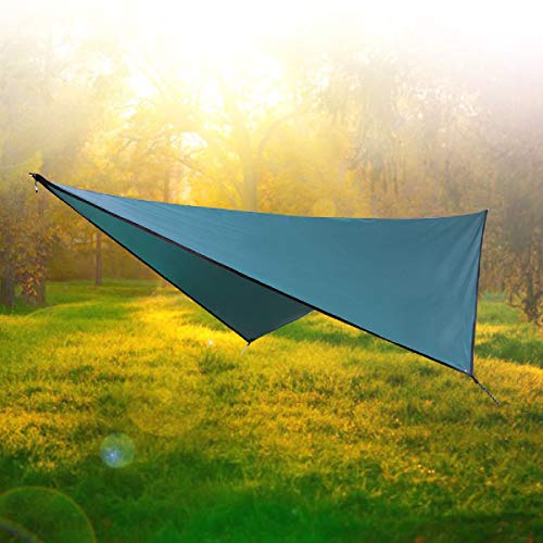 ハンモックと組み合わせるタープ用に買いました。軽量で小さく収まるのでバックパッキングに好都合です。タープとして使うにはハトメ部分などの耐久性が気になりますが、ハードな使い方はしないつもりなのでいいでしょう。