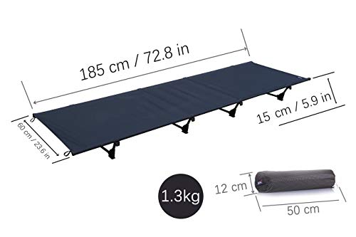 素材は600Dオックスフォード布に7075アルミニウム合金のレッグパーツを採用し軽さと強度のバランスがいい製品です。サイズは85×60×高さ13cmとロータイプの中でも低めでスリムなコットになっていて小さなソロキャンプ用テントでも圧迫感を感じにくいですよ。