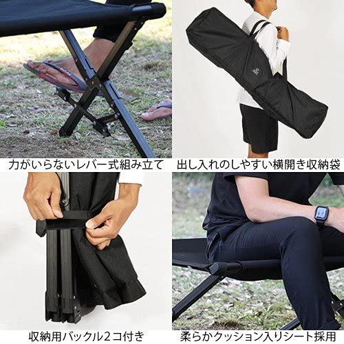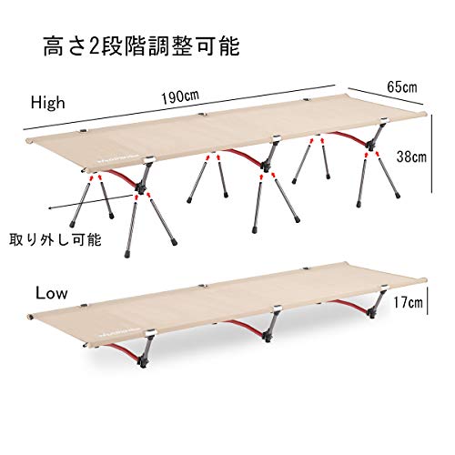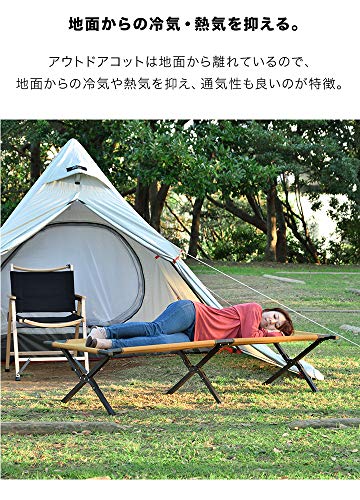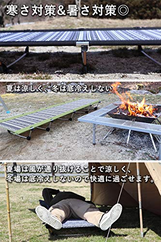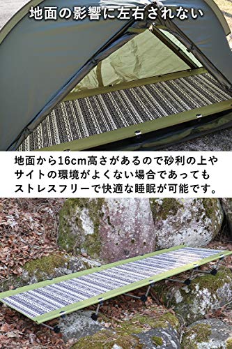 出典: https://www.amazon.co.jp/dp/B086JJV3FY/ref=sspa_dk_detail_1?psc=1&pd_rd_i=B086JJV3FYp13NParams&smid=A11Q8N5GE7D7ID&spLa=ZW5jcnlwdGVkUXVhbGlmaWVyPUExREI0Skk4TDVLTDJYJmVuY3J5cHRlZElkPUEwODc1MDQ0RUQwMVk2Nk1aSTYyJmVuY3J5cHRlZEFkSWQ9QTI1UUpESEFYSkpQQ1Qmd2lkZ2V0TmFtZT1zcF9kZXRhaWwyJmFjdGlvbj1jbGlja1JlZGlyZWN0JmRvTm90TG9nQ2xpY2s9dHJ1ZQ==高さのあるハイタイプのコットはロータイプよりも多機能に使えます。例えばコットの下に荷物を置くことでテント内、サイト内をきれいに整頓でき、製品によってはベンチとして使えるように設計されているため2人以上で座ることも可能です。