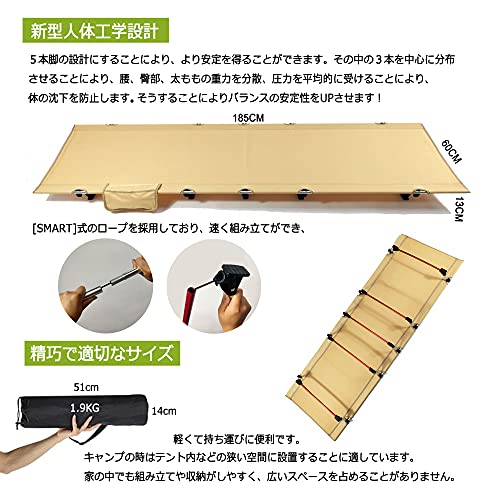 収納サイズは51×14×9cmとなり重さは1.9kgと一般的なコットよりも軽く携帯しやすい作りになっています。低価格ですがきちんと150kgもの耐荷重もあり初心者にもおすすめです。