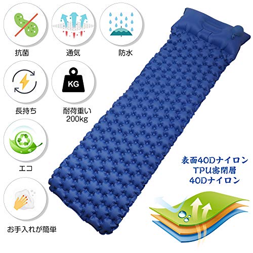大きい割に3kg以下と軽量で、凹凸も気にならず、寝袋なしで使っても快適に眠れるでしょう。バルブは大きめで使いやすいですが、空気入れは別途購入する必要があります。寝心地のよさも抜群で、災害時の備えや来客用の簡易ベッドとしても人気があります。