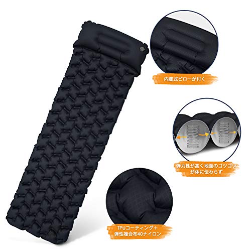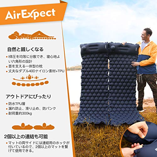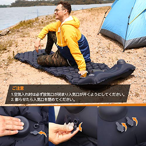 耐荷重は200〜300kgで、大柄の人が寝ても安心。栓を開くだけで空気が注入され、マットの準備が完了します。体の負担を軽減する枕がついており、まるで家で寝ているような心地よさを感じられるでしょう。