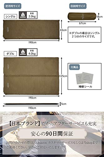 二重栓を採用し、足で踏むだけで簡単に空気を注入することが可能です。マットレスを始めて使う人でも、1〜2分で準備を整えられます。キャンプの準備になるべく手間をかけたくない、という場合に最適です。また、万が一の時に役立つ補修シールが付属しています。