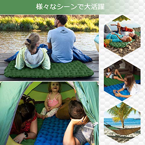 表面には六角形のハニカム構造を採用することで、体圧を分散。体の一点だけに圧力がかかるのを防ぎ、キャンプ翌日まで疲れを残さないようにできます。また、多層構造の40Dナイロン素材に加えてTPUコーティングを施すことにより、地表からの熱気や寒気を防げるのも魅力です。