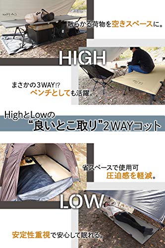 高さを簡単に変えられる、便利なコットとして評判を集めている商品です。使用シーンに応じて高さを調整できるタイプを求めている場合におすすめ。折りたたみ式で簡単に設営できるため、初心者でも気軽に取り入れられます。