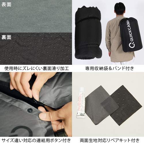 基本的な仕様、膨らむ時間などは変わりませんがマットの表面が起毛素材(スエード)になっているクイックキャンプのインフレータブルマットです。ポリエステル生地もさらさらとした手触りですが、本品はよりなめらかな手触りなっている特別仕様のマットになり人気があります。