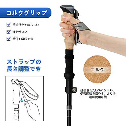 トレッキング中に必要になったら、すぐに組み立てて使えます。準備に手間がかからず、初心者でも簡単に使えるモデルを探している場合におすすめ。全体の素材には高品質のアルミニウム合金、先端にはタングステン合金を使用し、高い強度を備えています。