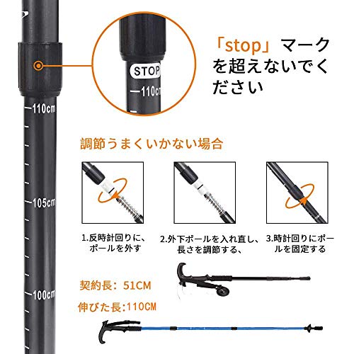 ポールの長さは三段階で36cm〜130cmまで調整できます。身長や使用するシーンに合わせて長さを変えて、トレッキングに役立てましょう。