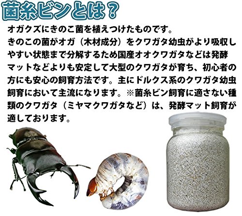 栄養価が高く菌糸の活性も強いので、幼虫の死亡率が少ない高品質の菌糸ビンになっています。幼虫がタンパク質不足にならないように、添加剤として高タンパク成分配合の菌糸ビンです。
