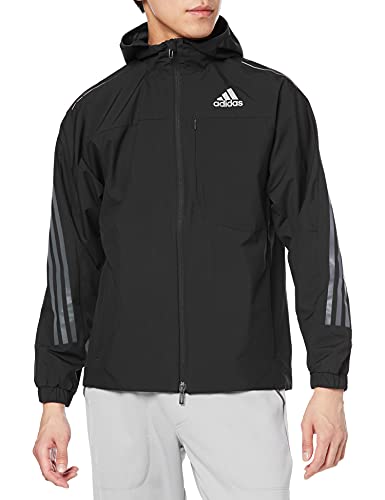 カラーはブラック以外にレジェンドインク(ネイビー)とフォーカスオリーブ(カーキ)の全3色。肩から腕にかけて入っている、アディダスのトレードマーク3本線がおしゃれなウィンドブレーカーです。