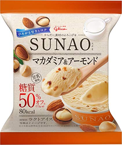ハーゲンダッツなど、同じカップアイスでも味によってカロリーや脂質、糖質の量は違います。しかし、sunaoはバニラもストロベリーも、そしてマカダミアナッツ&アーモンドもカロリーは全く同じ80kcalです。
