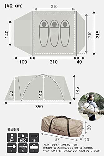 耐水圧が1000mmのテントシートを採用しているので、小雨程度であれば心配なく中で過ごすことが可能です。クラシックベージュ・ネオベージュ・グリーンの3色より選ぶことができます。必要ないときにはコンパクトに畳んでしまっておけるハンドル付専用バッグもついてくる日本製テントです。