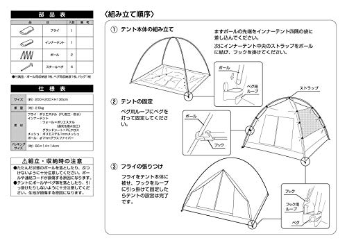 低価格なため入門用テント、晴れた日、春~秋のキャンプにもおすすめになります。
