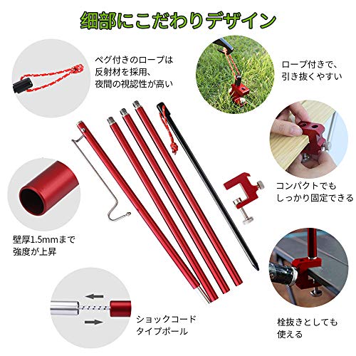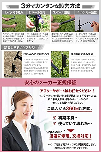 最大で20kgまで耐えられる強度を備えており、ランタンを吊り下げたとしても壊れる心配をせずに済みます。簡易シャワーを取り付けるなど、大きめのアウトドア用品を取り付けた場合も安心。強度が高く、長く愛用できる工夫が詰まった商品として人気を集めています。