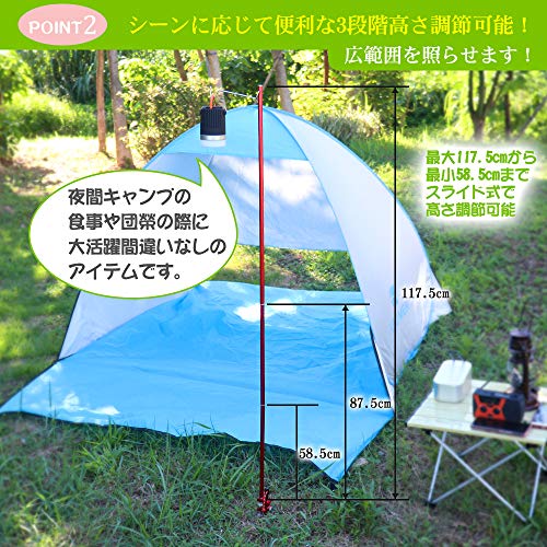 用途に合わせて、110cm、145cm、180cmと高さを変えられる便利な商品です。手元を照らしたい場合や、テント全体に明かりを行き渡らせたい場合など、シーンに合わせた使い方ができます。汎用性の高いスタンドを求めている時におすすめです。