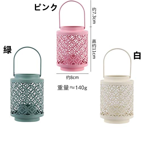 こちらのキャンドルランタンは、北欧調で可愛いフォルムが女性に人気です。カラーは緑、ピンク、白の3色で、優しい雰囲気を醸し出しています。サイズは高さ11cm、幅が8cmとコンパクト。重さも140gと軽量です。