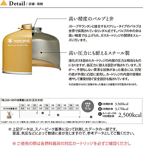 スノーピーク「ギガパワーガス250 プロイソ GP-250GR」は、サイズ、燃焼効率ともにスノーピークのスタンダードOD缶です。