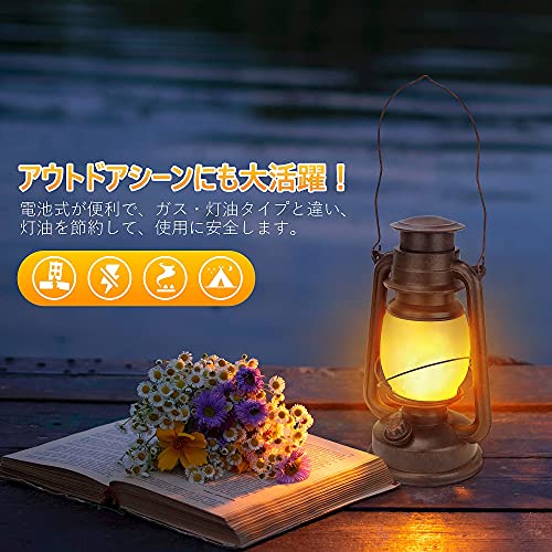 ガスやオイル系のランタンを思わせる、アンティーク感のあるおしゃれなデザイン性が魅力です。照明の部分にはすりガラスを使用し、360度を優しく照らし出します。光源にはLEDを使用しているため、火災の心配をしなくてよいのが嬉しいポイントです。