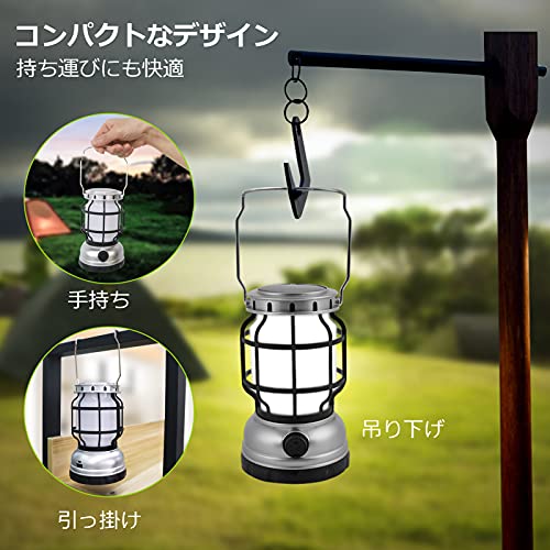 USBによる充電の他に、手回しでも充電できるランタンです。アウトドア中に充電が足りなくなった時も、電力を必要とせずに充電できるのが嬉しいポイント。ランタンとしてテーブルの上に置けるのはもちろんのこと、吊り下げて使用することも可能です。