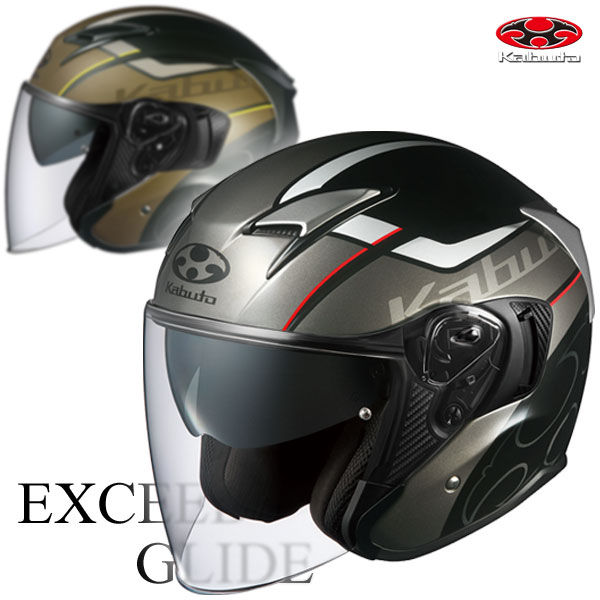 日本のバイク用ヘルメットブランド・OGKKABUTOより販売されているエクシードグライドは、カブトロゴを大胆にあしらったダイナミックでかっこいいデザインのジェットヘルメットになります。