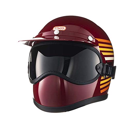 トゥーカッターより販売されているSG/DOTヘルメットは、クラシック感満載なデザインで、無骨なデザインのカフェレーサーとも相性よく使える人気フルフェイスヘルメットになります。8900円のゴーグルを付属しているお買い得なセット商品です。