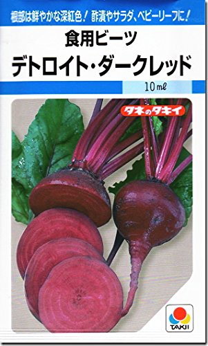 デトロイトダークレッドは、ビーツの中でも強健で作りやすい晩生(おくて)の品種です。球体の根は肉質が柔らかく緻密で甘みが強いのが特徴で、サラダやピクルス、ボルシチなどに利用できます。畑で栽培する方におすすめの品種です。