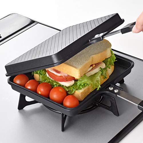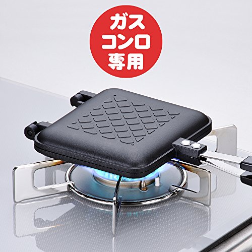 IH対応のホットサンドパンですので、ガス火専用のものとは材質が異なっています。サイズはほぼ同じですが、こちらのもののほうが若干大きいようで、その分重量も大きいです。また、このIHタイプはIHで使えるのはもちろん、ガス火でも使えるタイプとなっています。