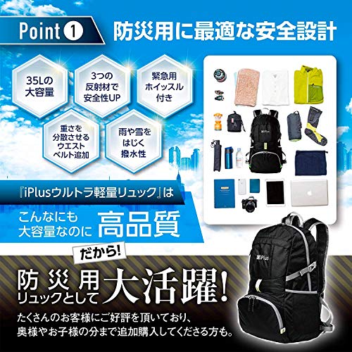 iPlusの「ウルトラ軽量バッグ」は軽さ・機能性・丈夫さを全て備えたリュックです。重さが405gとペットボトルより軽く、肩パッドの厚さが従来の2倍になっているため、肩や背中への負担を軽減できるアイテム。