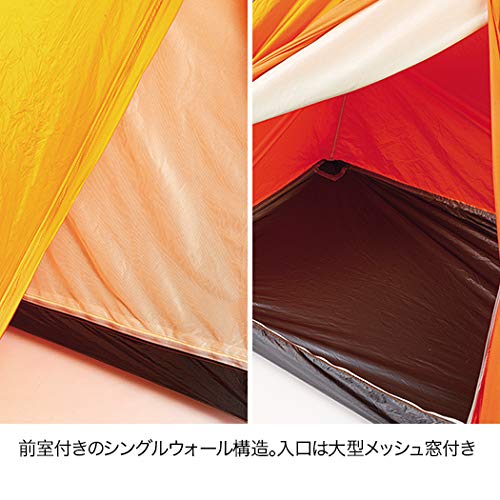 | 素材 | 本体:30d66ナイロンリップストップPU防水透湿コーティング、耐水圧1000mm、透湿性6000g/m2・24h A-1法(初期値)、ボトム:30d66ナイロンリップストップPU防水透湿コーティング、耐水圧1800mm(初期値)、ポール:ジュラルミン |