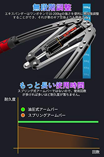 高品質なシームレス溶接技術を採用することで、使用中のオイル漏れを防ぎます。耐久性に優れているため、毎日たくさん使用しても壊れる心配をせずに済むでしょう。10kg〜200kgまで、好みの負荷に調整できるため、女性から男性まで気軽に筋トレに挑戦できます。