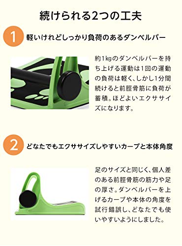 日本福祉大学准教授監修のフットペダルです。椅子に座りながら台の上に両足を置き、つま先部分のダンベルを持ち上げるようにゆっくりと動かすことで前脛骨筋を鍛えるトレーニングになります。仕事先や自宅で椅子に座りながらできる筋トレグッズで、歩行や足の機能回復にも使えるアイテムです。