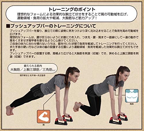 上半身の胸筋はもちろん、上腕三頭筋や背中の筋肉、肩やお腹の筋肉を肥大させるのにも役立てられる腕立て伏せグッズです。お値段もとてもリーズナブルで、コスパもよい製品になります。