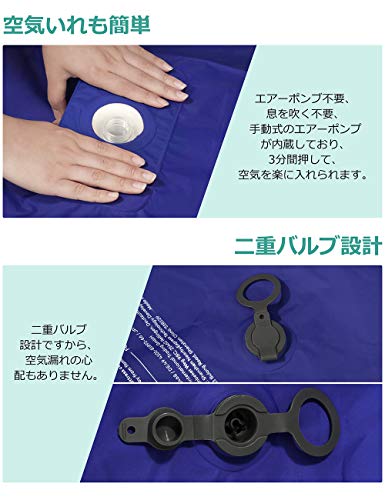 「Overmont」のキャンプ用エアーベッドは、足で踏んで空気を注入できます。内蔵インフレーターがマットレスの中に入っており、簡単に空気が入るようになっているのです。そのため、楽にエアーベッドを準備したい人に向いています。