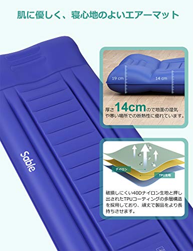 屋外でも抜群な寝心地を追求したい方には、「Sable」のキャンプ用エアーベッドがおすすめです。厚さが14cmと他のブランドより厚く、寝心地は抜群ですよ。また、枕と別途で空気を入れるため、まるで家にいるかのような感覚を味わえます。