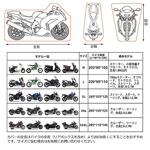 サイズバリエーションもとても豊富なため、さまざまなバイク車種に使える完全保護のバイクカバーです。オレンジとブラックの2色を使っているバイクカバーで見た目もおしゃれなので人気があります。しっかりとした厚手のものでよいという口コミも投稿されている人気製品です。